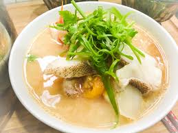 Creamy fish head soup and bok choy....