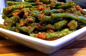Green beans, pork mince, dark soy sauce, chilli garlic sauce, ginger