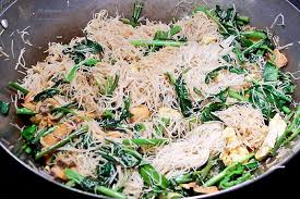 Yellow noodles and vermicelli with rich and creamy coconut milk, fried tofu, mushrooms, black fungus, baby corns, carrot, and season vegetables.