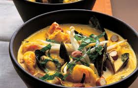 Fish curry powder, fish head, coconut milk, lemon grass, tamarind paste
