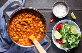 Chickpeas cooked in a lightly spiced tomato and onion gravy