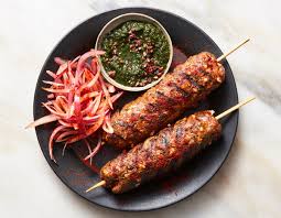 Marinated lamb mince in chefs special spices cooked in the tandoor on a seekh