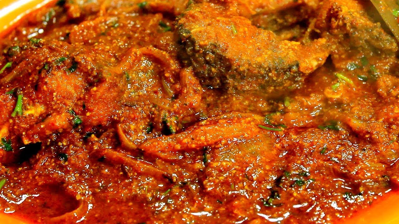 Seasonal fish fillets cooked in onions, tomatoes, and roasted spices in a thick herb gravy