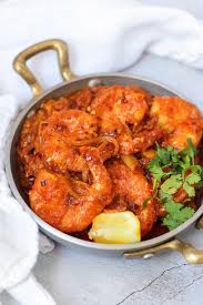 Prawns cooked with onions, tomatoes and roasted spices in a thick herb gravy