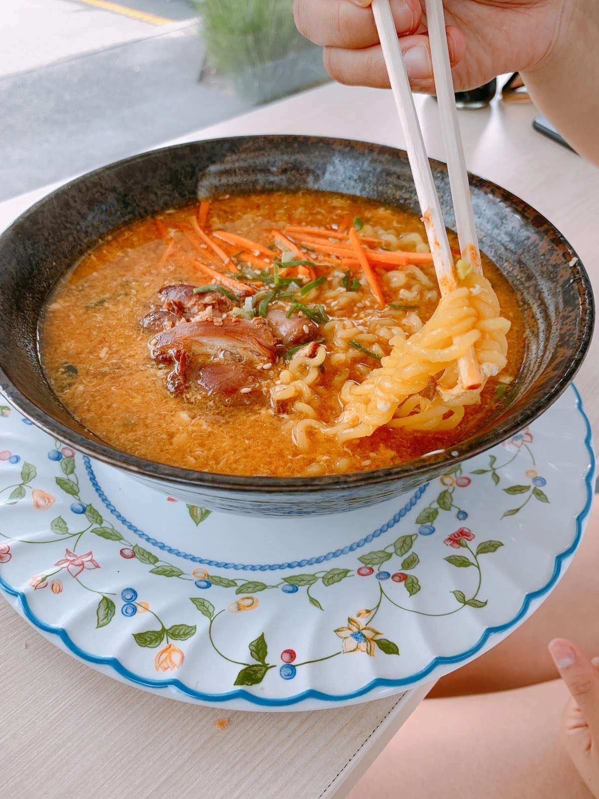 Special Noodle with Funky Beef Soup, Teriyaki Chicken, Surimi, Spring Onion, Carrot, Sesame Seeds