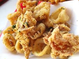 Calamari, buttermilk, smoked, garlic powder, all purpose flour with paper salt