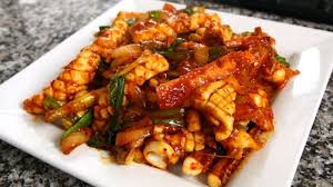 Squid, dark soy sauce, salad, sesame oil, cucumber...