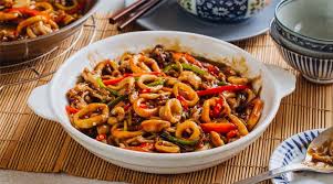 Seafood with Cashewnut .Oyster sauce, shrimp, soy sauce, brown sugar, toasted sesame oil