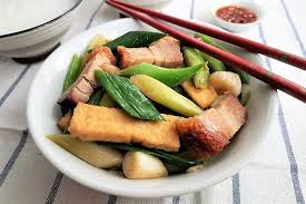 Roast Pork and Bean Curd with Vegetables,Stir fry, oyster sauce, soy sauce, tau, carrot
