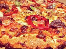Tomato, mozzarella, mushrooms, onion, capsicum, ham, salami, spicy sau...