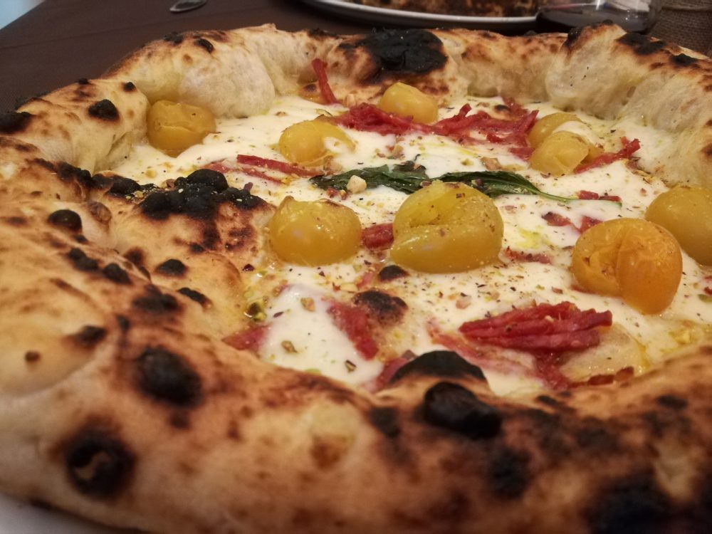 Tomato, mozzarella, mussels, shrimps, fish, smoked salmon, caramelized...