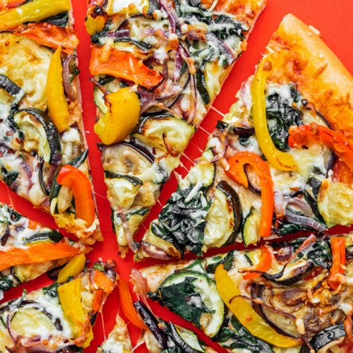 Tomato, mozzarella, mushrooms, onion, olives, capsicum, spinach...
