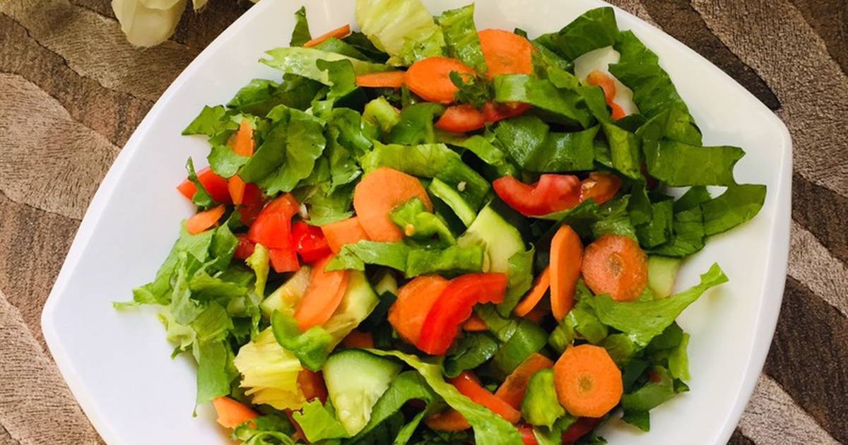 Mixed salad tossed with balsamic vinegar and extra virgin olive oil