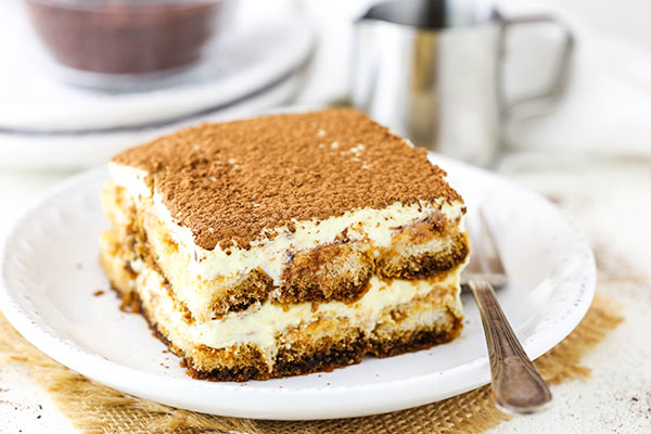 Savoiardi sponge soaked in espresso liqeur and layered with mascarpone