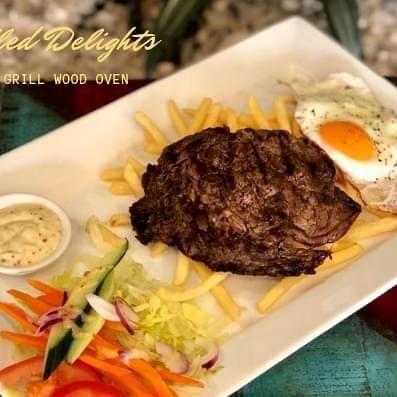 Tenderised prime scotch fillet, egg, mayo, salad, and tomato relish....