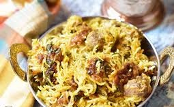 Highly flavoured chicken pieces cooked in spicy rice served with Raita...