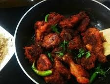Batter fried chicken cubes tossed with diced onion, capsicums & green chilly.