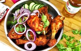 Succulent chicken pieces in a rich marinate cooked in Tandoor