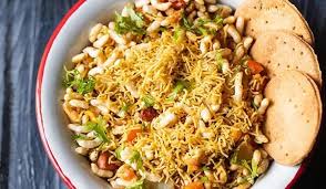Puri, puffed rice, moong bean sprouts, sev, jaggery...