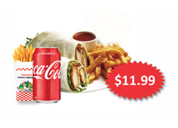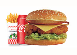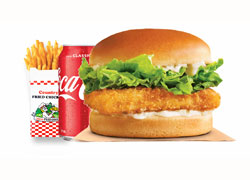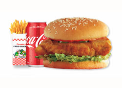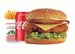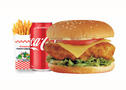 Lettuce, mayonnaise, tomato, cheese and breast fillet. + Fries and Can 330ml (coke/pepsi/mountain dew - subject to availability)