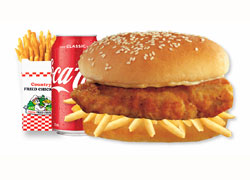 Lettuce, mayonnaise, fries, cheese and breast fillet. + Fries and Can ...