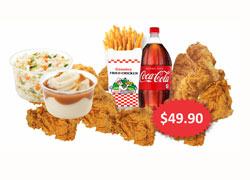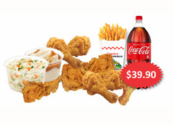 6 Thigh, 10 Drums, Large Chips, Large Potato Gravy, Large Coleslaw and Drink 1.5L (coke/pepsi/mountain dew - subject to availability)