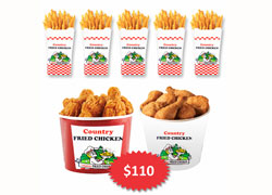 6 Thigh, 10 Drums, Large Chips, Large Potato Gravy, Large Coleslaw and...