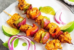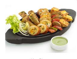 Cubes of cottage cheese marinated In youghurt and spice skewers with fresh vegetable roasted In tandoor
