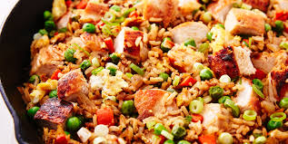 Rice, soy sauce, chicken breasts, red pepper, green...