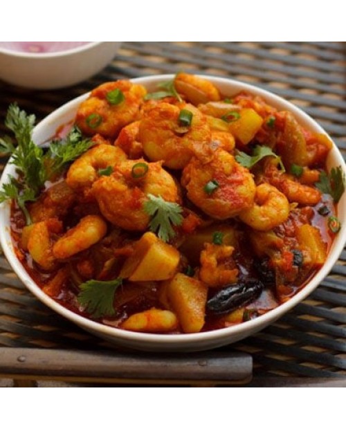 Shelled king prawn onion capsicum, fresh ginger and spices...