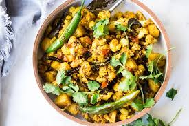 Dry blend of potatoes cooked in spices ad cumin seeds