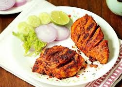 Chicken marinated in youghurt and spices and then grilled and baked in a conventional Oven