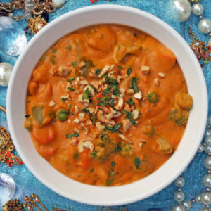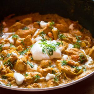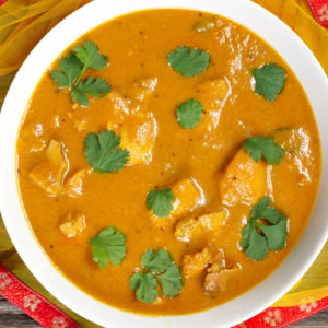 Tender chicken cooked with fresh coconut cream combine with chefs special South Indian spices finish with Malibu. Made in curry of India special sauce.