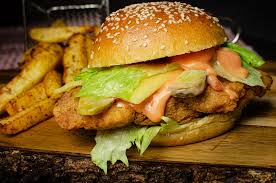 Chicken thigh, Schezwan sauce, pineapple, lettuce, tomato, gherkins...
