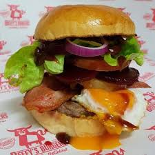 NZ grass-fed beef (170g), bacon, cheddar, lettuce, tomato, beetroot, Gherkins, D’s homemade relish
