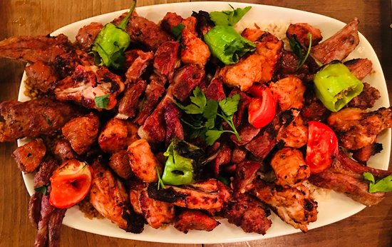 Variety of charcoal meat and chicken served with our signature rice, two naans, salad and traditional sauces