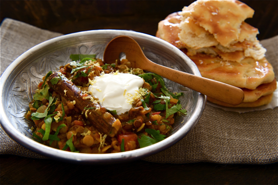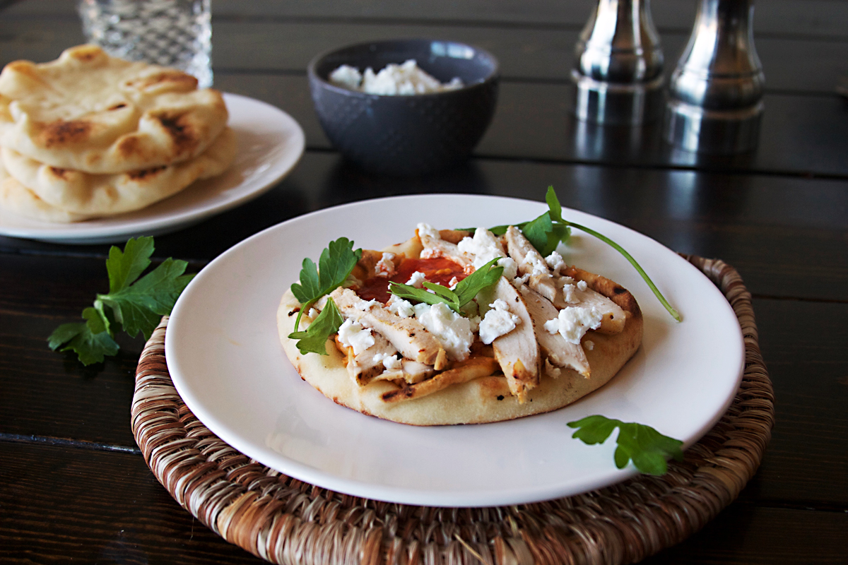 Eggplant, naan, tahini, olive oil, lemon juice...