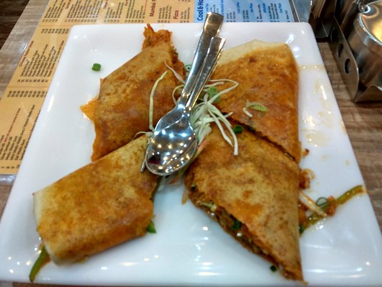 Dosa stuffed with spring vegetables,noodle and chinese mixed sauce