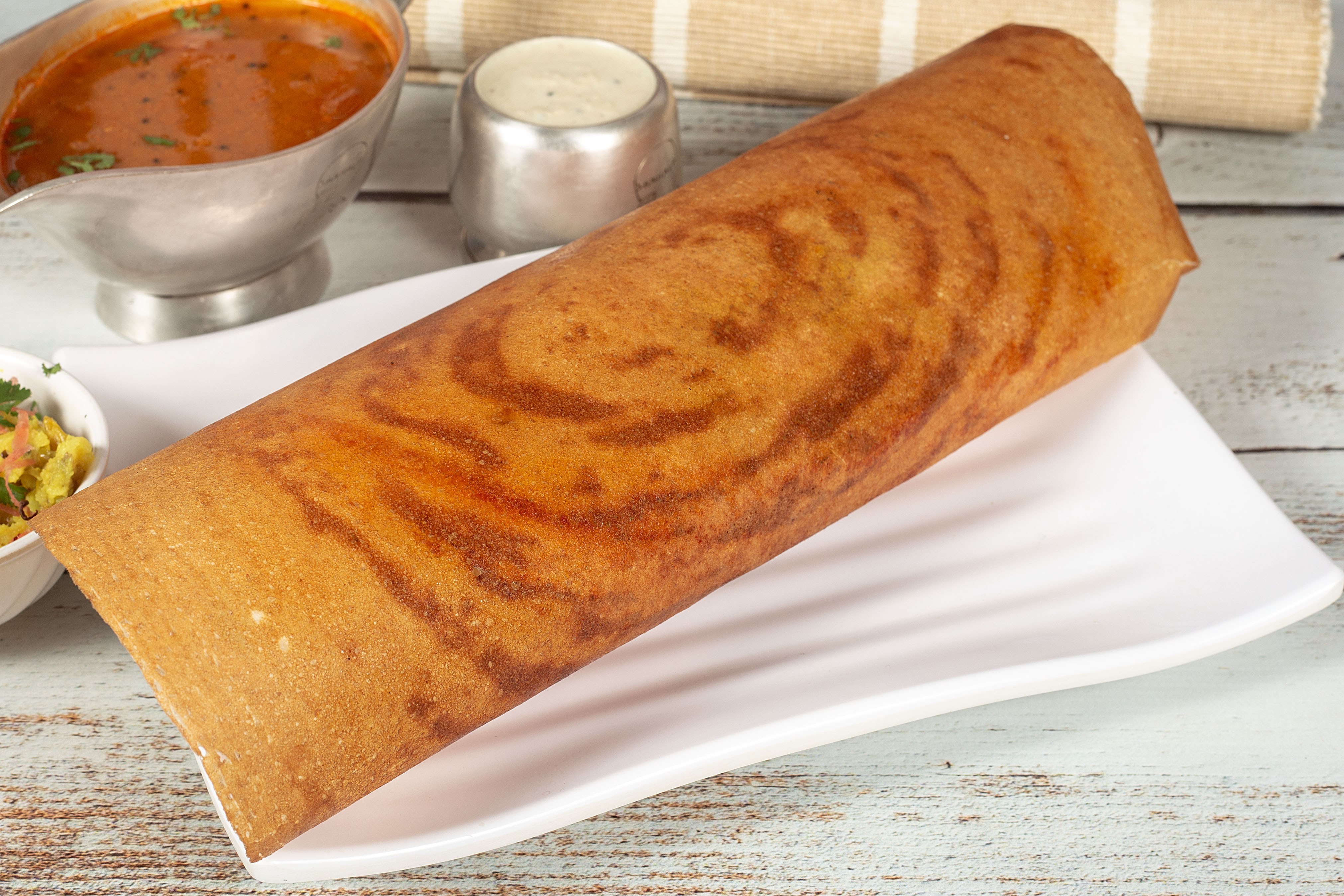 crispy,plain crepe stuffed with curried & tempered mashed potatoes