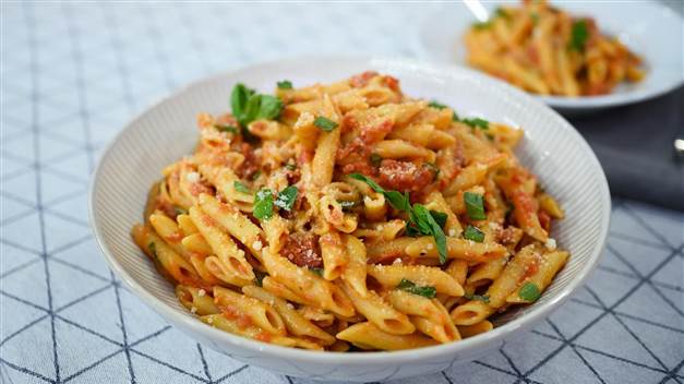 Penne, diced tomatoes, olive oil, basil, garlic...