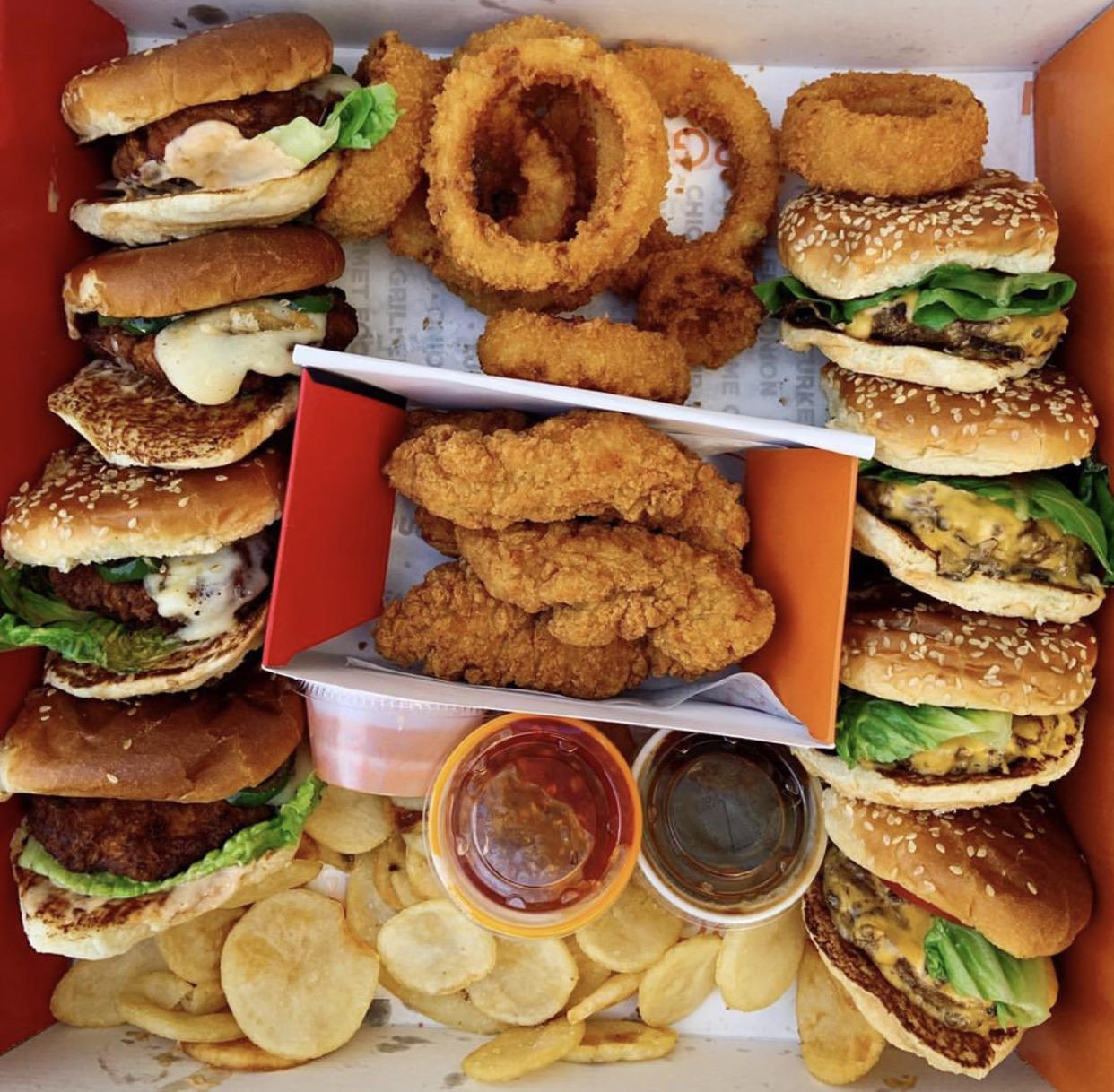 Serve 4 people to eat. Rib Burger & Chicken Burger & Beef Burger & Pan...