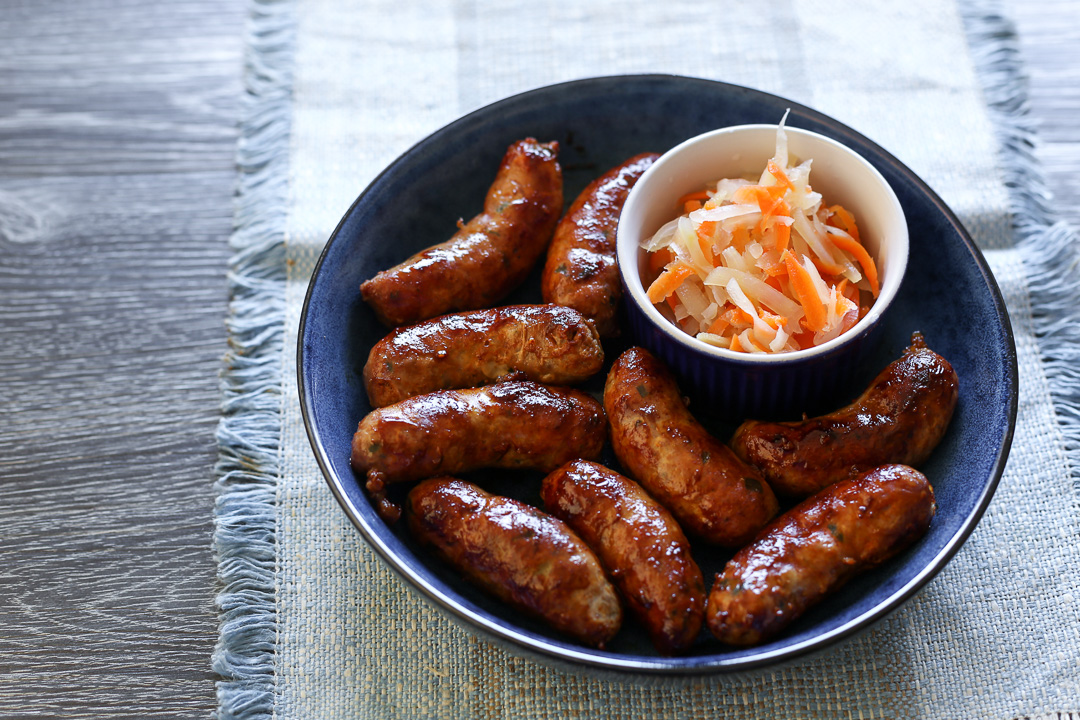 Pork sausage. Sweet and garlic sausage with garlic rice and a fried egg.