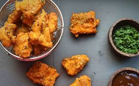 Boneless chicken pieces dipped in a finally spiced chickpea flour....