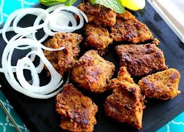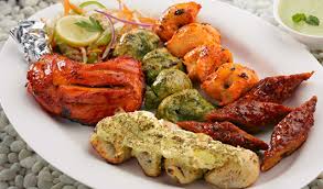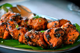 Cubes of chicken marinated in various herbs and spices barbecued in tandori oven.