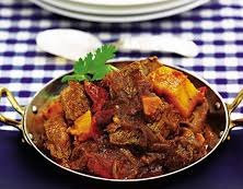 Lamb cooked with spices and onion gravy in hot vindaloo sauce, with sp...