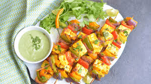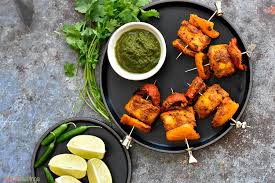 Homemade cottage cheese marinated in yoghurt, tomato fresh capsicum, onion mustard in tandoor
