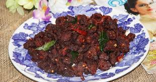 Meat cooked with butter sauce, brown sauce and finely chopped meat with desiccated coconut and fried with garlic.