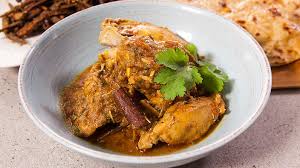 Fresh fish pieces cooked in onion gravy, potatoes and hot ground spices