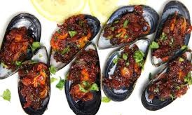 Mussels, coconut oil, frozen coconut, garam masala, curry leaves