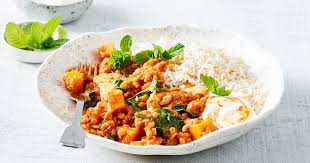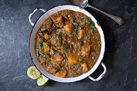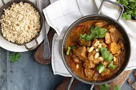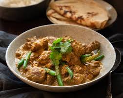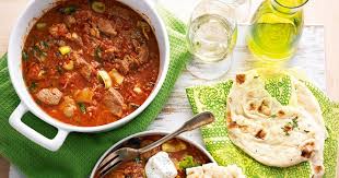 Diced lamb combined with potatoes and finished with coconut cream - a ...